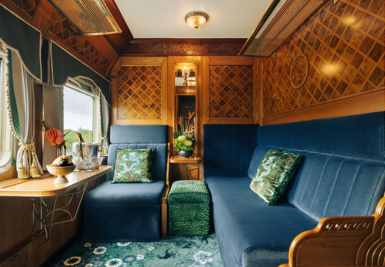 ダイニングはアディソン、マラヤ2輌のレストラン・カーはいずれもローズウッドとニレの木で花模様が装飾された豪華車両です。こちらでディナーやランチをお楽しみいただけます。食事はアジアとヨーロッパのテイストを程よく組み合わせた料理をご堪能ください。 朝食、アフタヌーン・ティーは客室でお楽しみいただけます。車列の最後尾には熱帯地方の田園風景を望む展望車や、中央には1日の終わりにリラックスできるピアノ・バー・カーも連結されています。